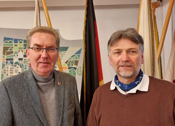 Bild: Jürgen Klein (rechts) wird von Bürgermeister Bert Horn willkommen geheißen.